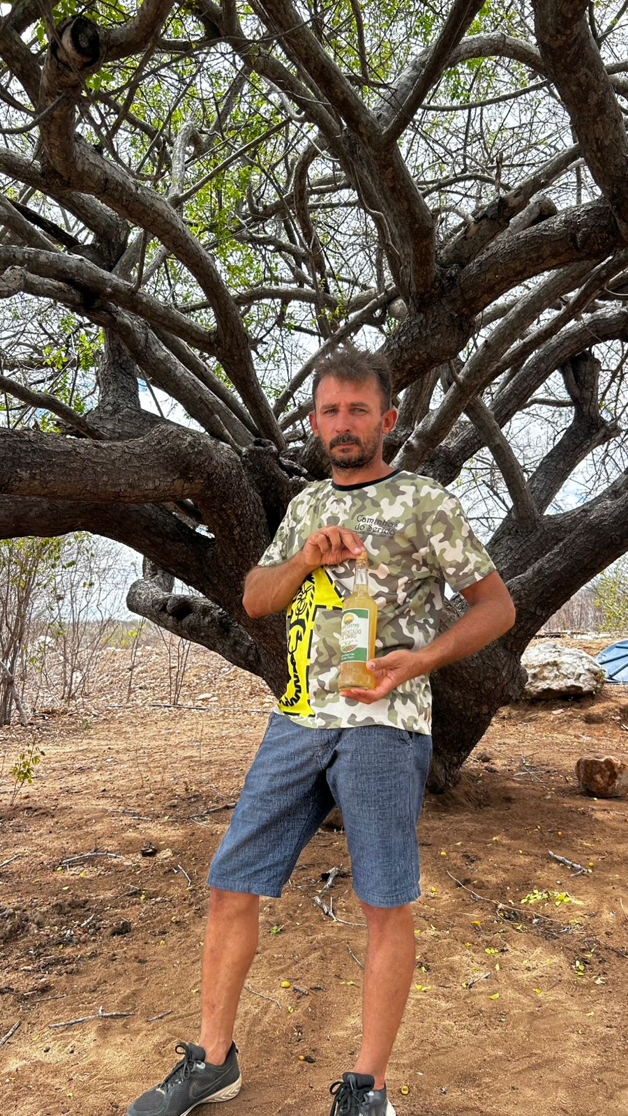 produtores de umbu na Paraíba. No assentamento onde Claudino vive há cerca de 45 anos, existem aproximadamente 800 pés da fruta nativa e ele tenta produzir esse espumante de umbu há 12 anos. Durante o período de safra, a colheita pode alcançar cerca de 80 toneladas por dia, evidenciando o enorme potencial produtivo da região.
